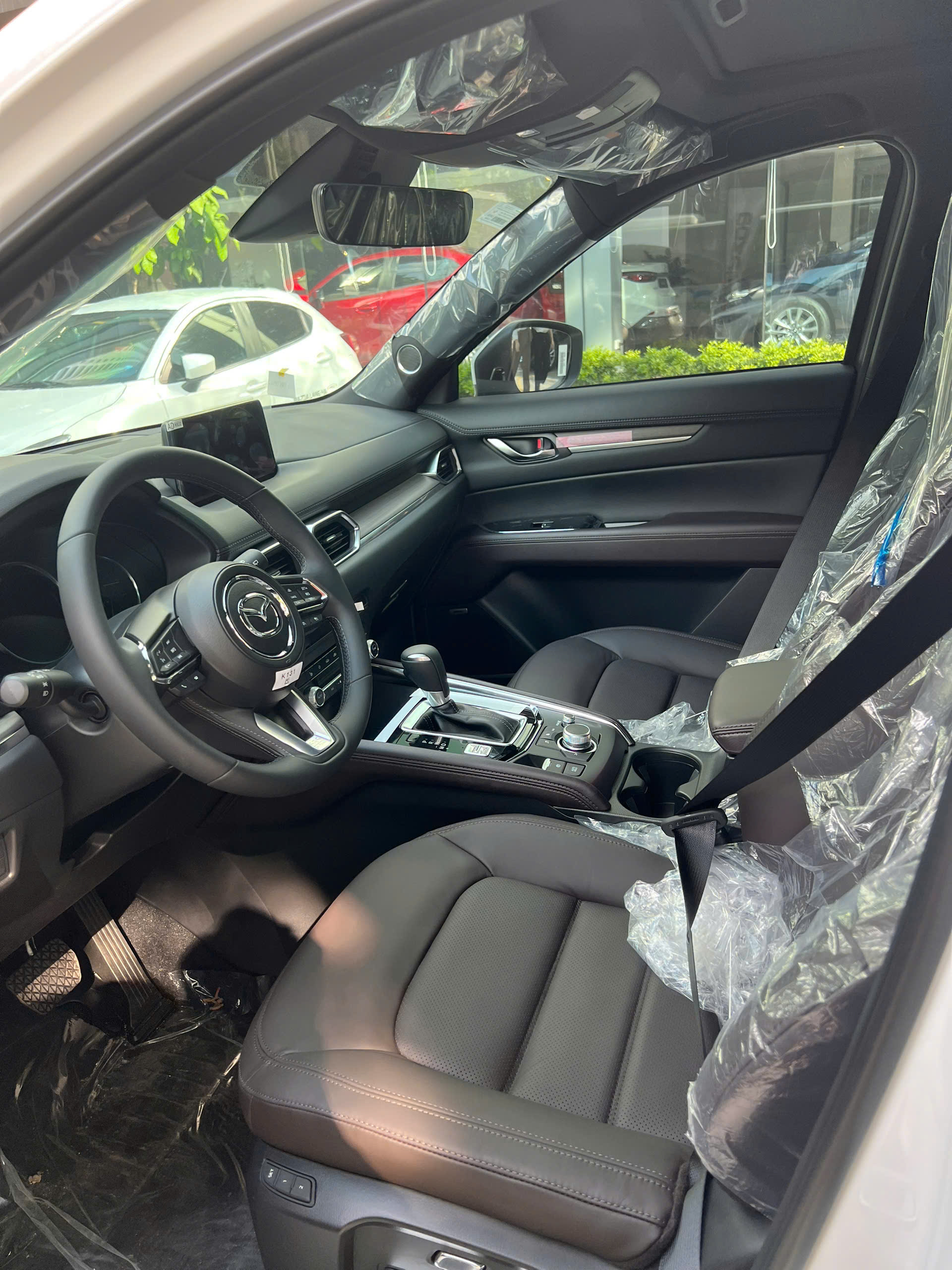 Bên trong, Mazda CX-5 Premium Exclusive màu trắng mang đến không gian nội thất rộng rãi và tiện nghi với các chất liệu cao cấp. Ghế bọc da sang trọng với đường chỉ khâu tinh tế, hệ thống điều hòa tự động hai vùng và hệ thống giải trí Mazda Connect với màn hình cảm ứng 8 inch, kết nối Apple CarPlay và Android Auto. Hệ thống âm thanh Bose cao cấp mang lại trải nghiệm âm thanh sống động, giúp mọi hành trình trở nên thú vị hơn.