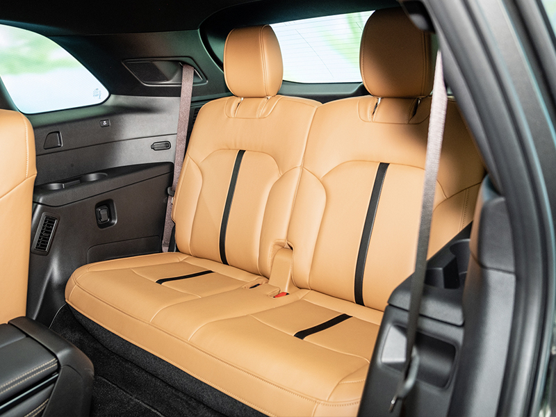 Hàng ghế thứ 3 của Mazda CX-90 rộng rãi cho người lớn ngồi còn trang bị đầy đủ cổng sạc và cửa gió